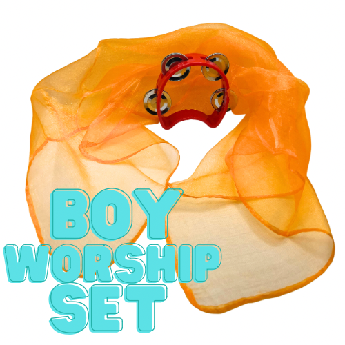 Each worship set comes with 1 child size tambourine and 1 child size silk worship cloth. Colors of sets are picked at random so whatever color the children will get is a surprise!